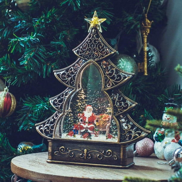 5.9'' h x 5.71'' w x 5'' d. The northlight musical christmas tree and santa claus blowing snow globe adds holiday cheer to your home. This wonderful snow globe has a beautiful moulded base covered in a mistletoe design and edged in scalloped gold. Three elves building a snowman. For instance, modern snow globes feature santa claus figurines and holiday village silhouettes.